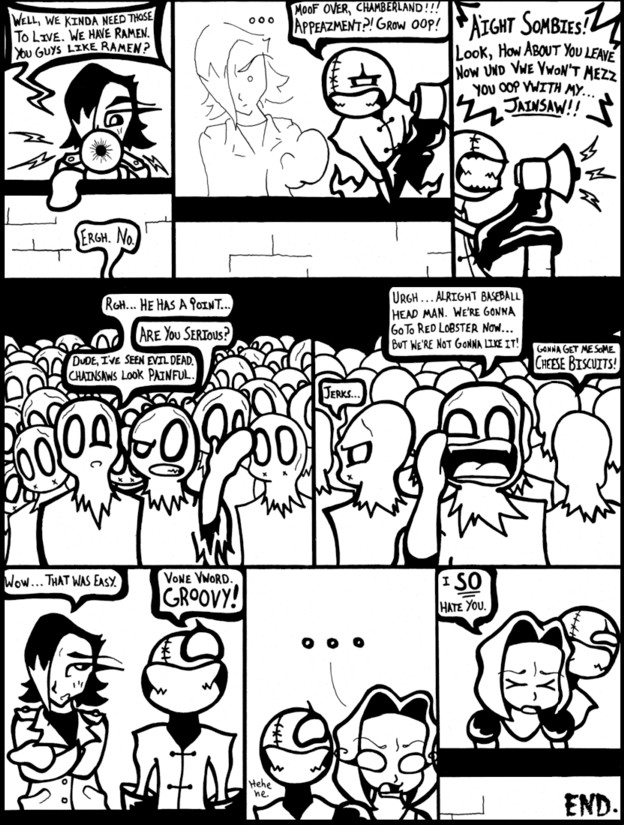 What? You don't like the cute zombies? Good. I have spooky, running, British zombies in my next comic, which I will post sometime soon. Or something.