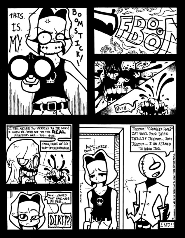 Next is a two-page comic (see attatchments). This one takes pop-culture references from Army of Darkness and probably something else I can't remember at the moment because I made it several months ago. Or something.