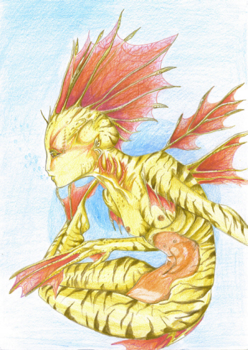 the next picture will be a mermaid. I thought about creating this character a while ago. I don't like ordinary mermaids, so I thought of an animal form. I wanted to keep this creatures fish-like.