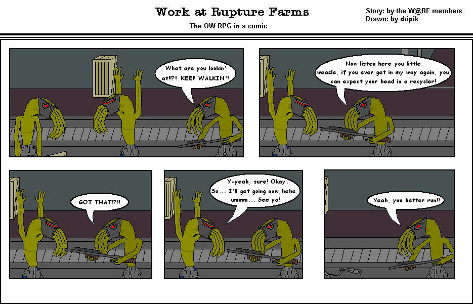 This is good stuff, dripik! Sorry I didn't post anything before, I had no Idea this existed. I just checked in to see how it was going, I wasn't expecting a comic! But on that site of yours the comics only go up to number 13. Either way, they look really good. I like the expressions.