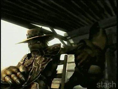 Can yeh get a shot at when Stranger grins at the Clakker when it says, "Yeah, I got a bounty hunter here, and wants ter have a word with yeh!"