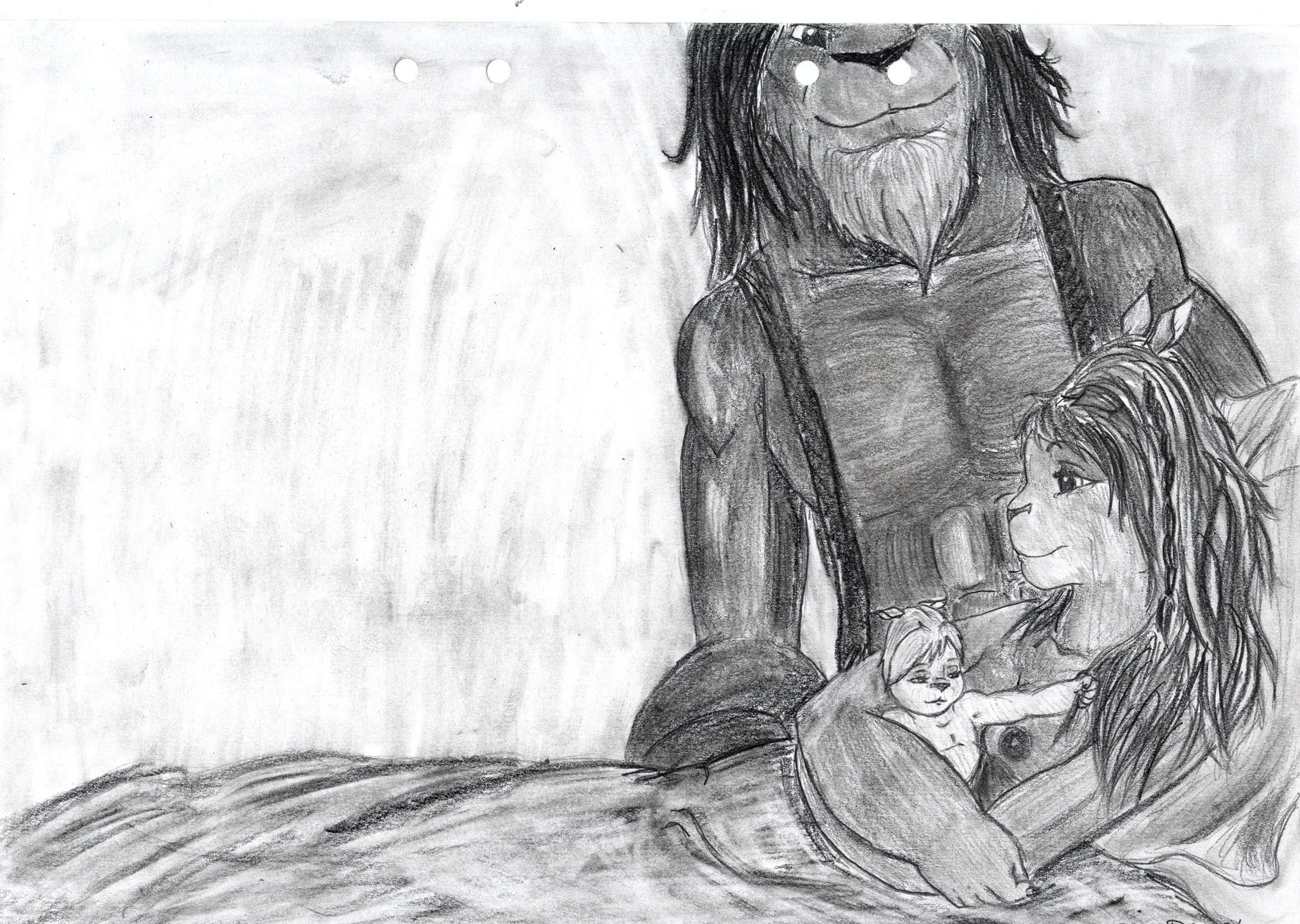 It's Daimen and Alika with thier baby Loki. I thought you'd regognize them, after all I draw pics for yer story