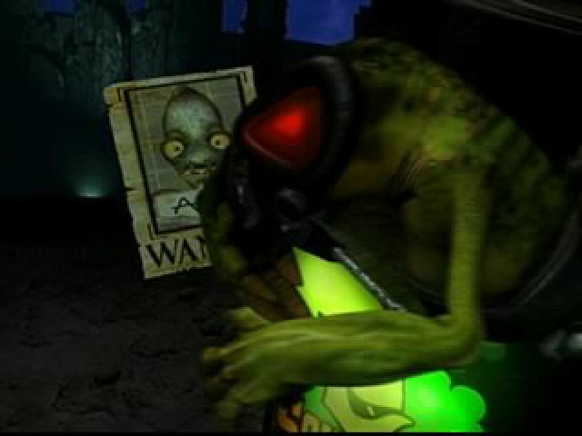 *Squeals* Those screenshots are so coolio. I keep looking at the one with Abe's expression when he hits his crotch on the tusk thing and the one with NewsCaster Slig using his microphone as a guiter. I also like the one where Big-Face is laughing and Abe has that sheepish smile on his face. I like these screenies. Keep it up.