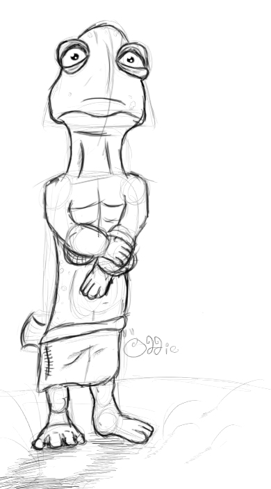 I thought I might share my oddworld draing that I am currently working on at the moment :3. It's of a grubb, however it isn’t finished yet, I've only really done the outline. Its all done on the computer, -on Photoshop.