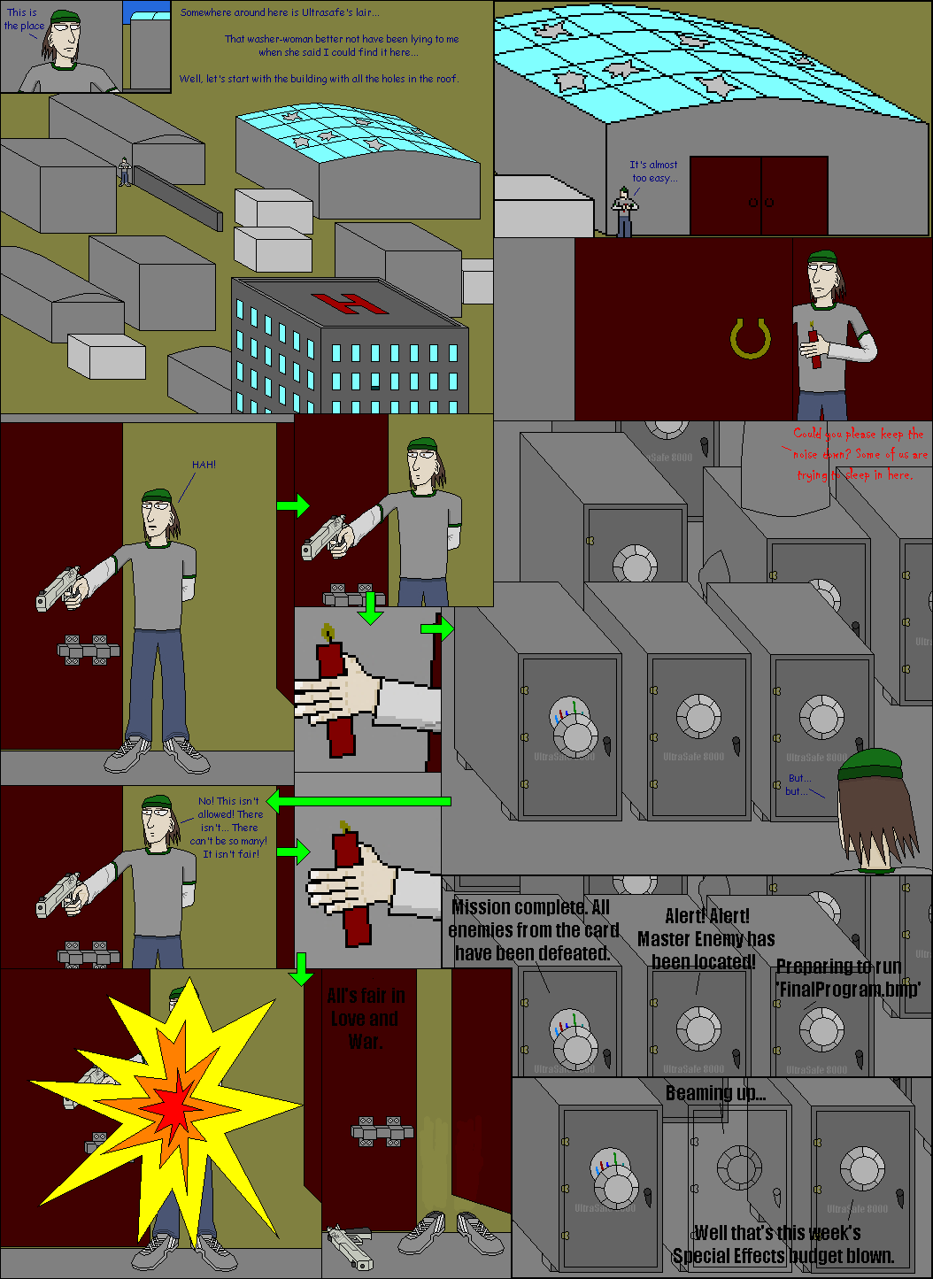 The quest began when Dripik drew a Wars of the Art greetings card which didn't include the Safe. Since them UltraSafe 8000 has elminated every character on the card. The question is, who remains?