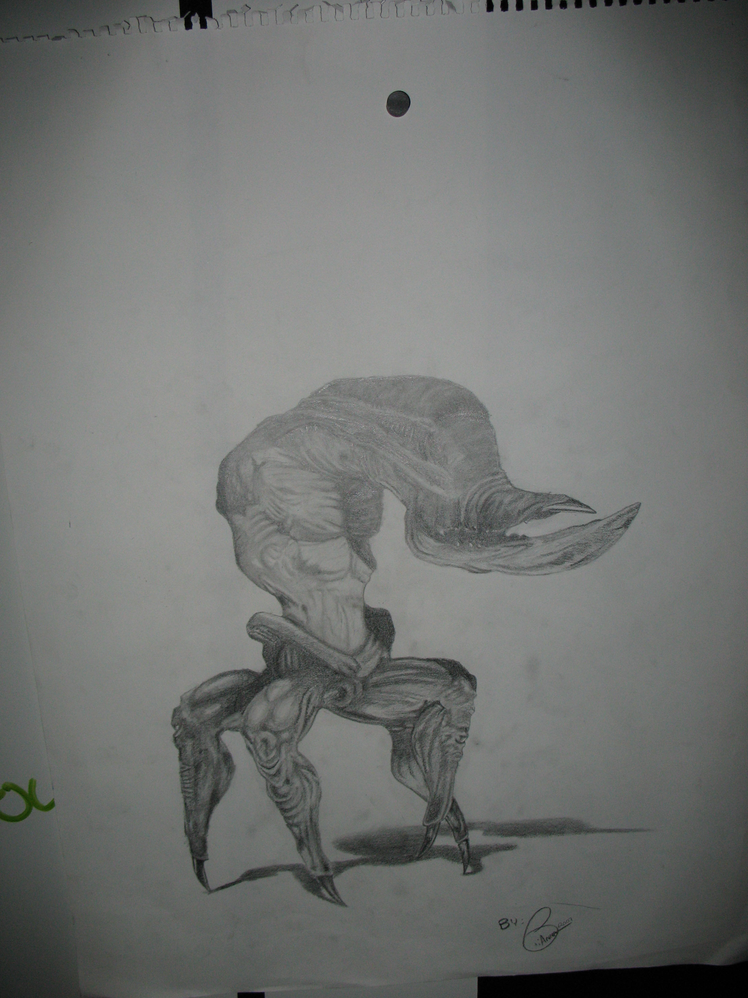 That is the most awesome thing I've ever seen. But it looks alot like you might have scanned the real version and then printed it out in black and white. I don't think you did though. It would be awesomer if you tried drawing it in a different position. For example: a scrab that's howling.