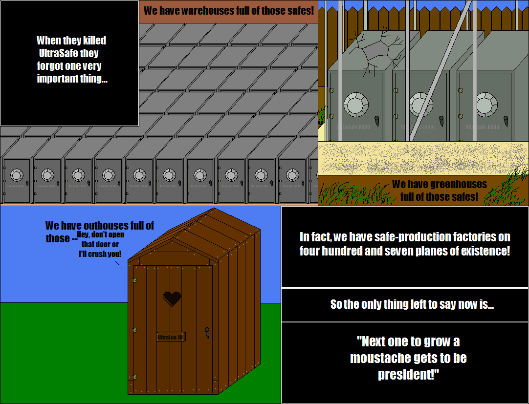 So the presedent isn't dead and there are millions of safes exactly like him just without mustaches?