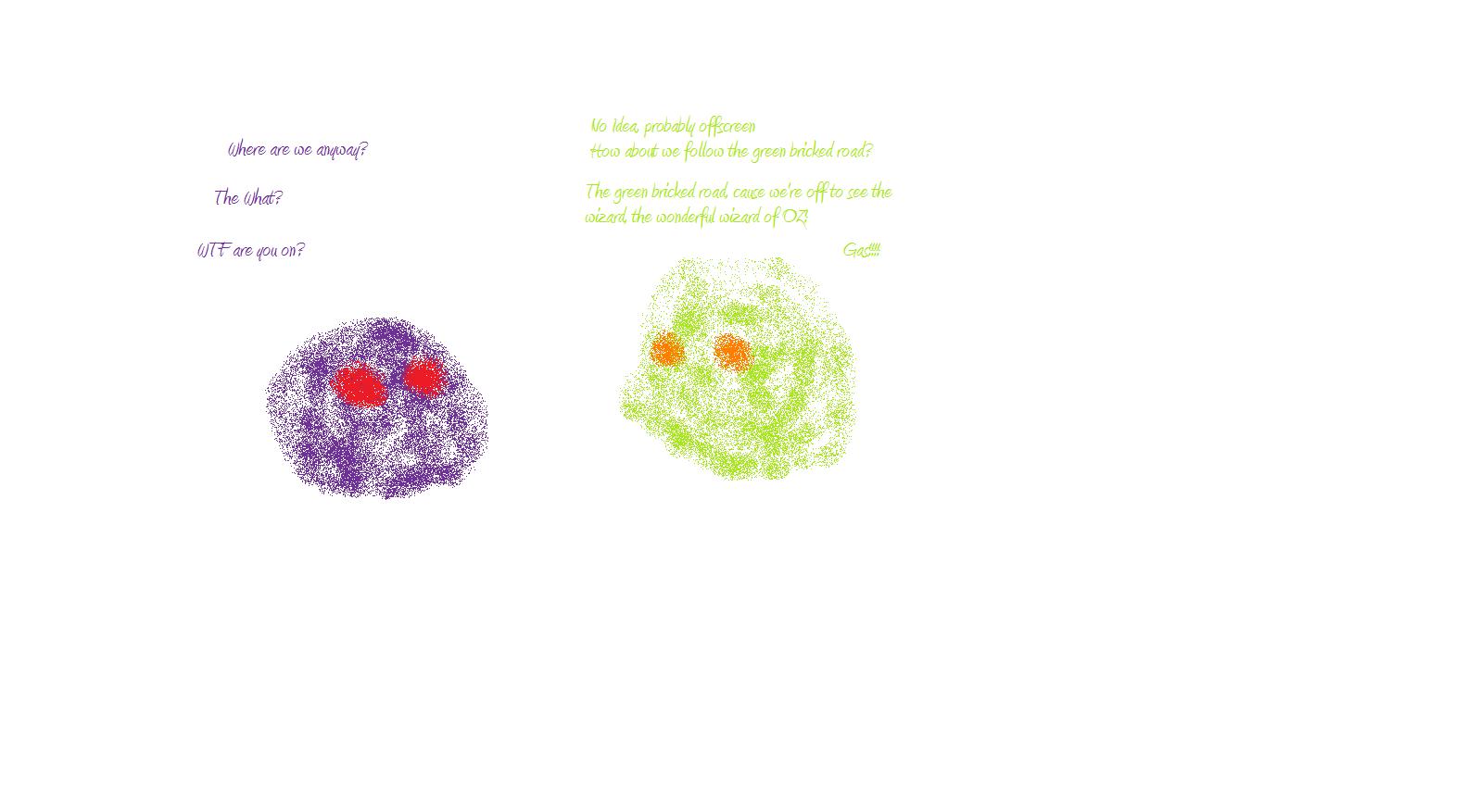 Meanwhile, MicroD goes on a 'recruitment tour'... Time to introduce some hand-drawn pictures in here.