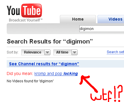 Strange. When I search up Digimon on Youtube I actually get videos.