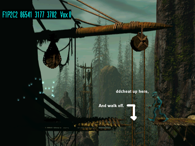 yes i think i know what you mean.i've done the same thing before im sure,when i died and shriveled up alot and used the cheat and was back on a platform again,really small.except that when i tried to move,abe would just stand in the same place walking or running.but if you hop you bounce back like you've hit a wall.
