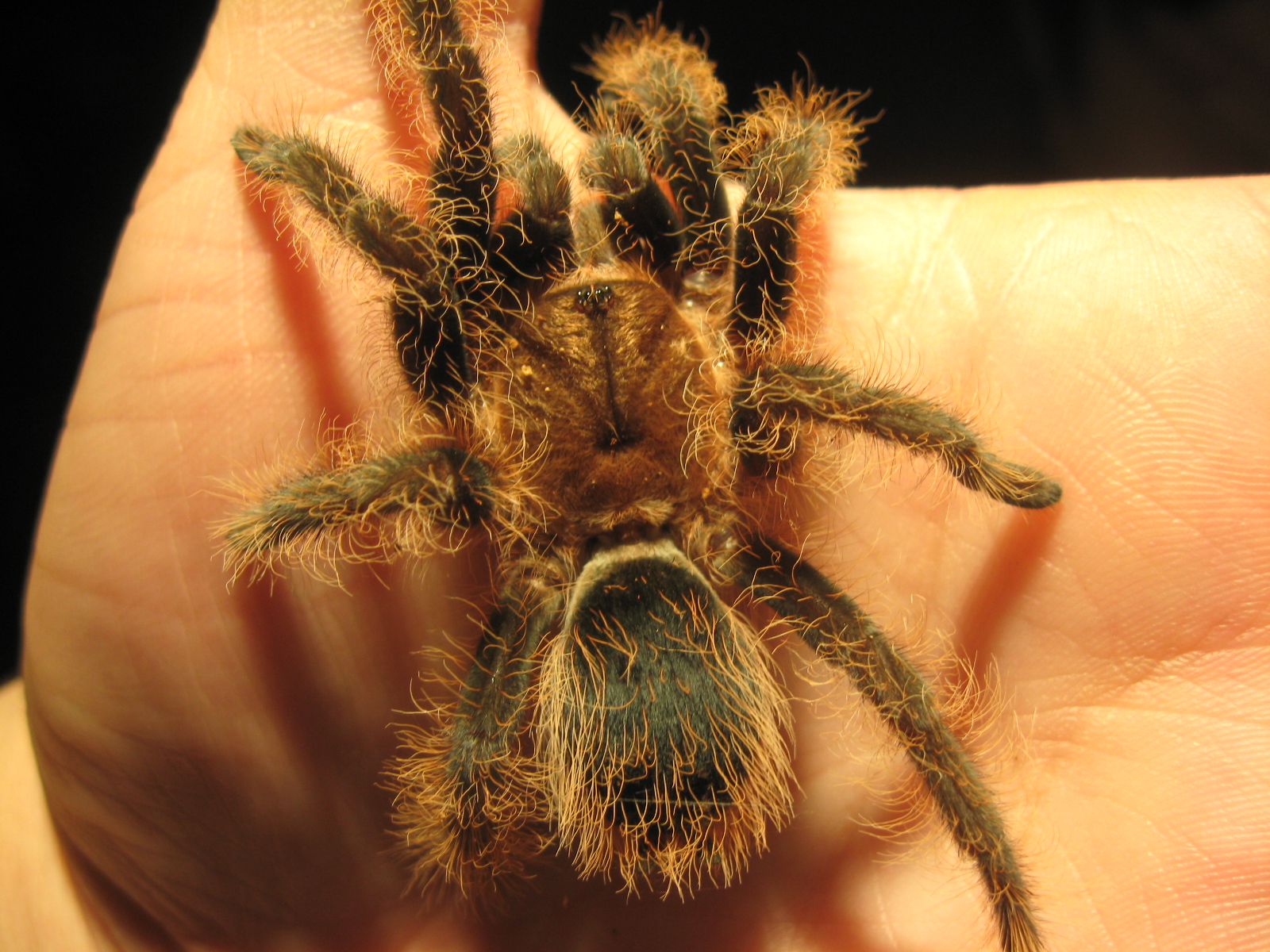 I envy you so much! I really want a Goliath in my collection. So far I have a Chilean Rose, 2 Honduran Curly Hairs, a Green Bottle Blue, a Brazilian Salmon, a Texas Brown, and a Brazilian Black and White.