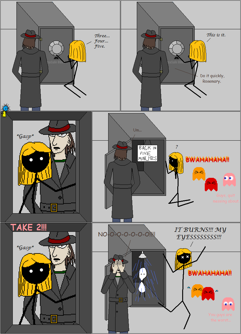 Moosh, the next comic is your responsibility, since I imagine you will want to carry out your own plots (plus I used up my only plan for destroying Carl with the ice-sculpture thing so I hope you've got something up your sleeve). Carl's life is in your hands (and Elanious's and Dennis's flippers/paws).