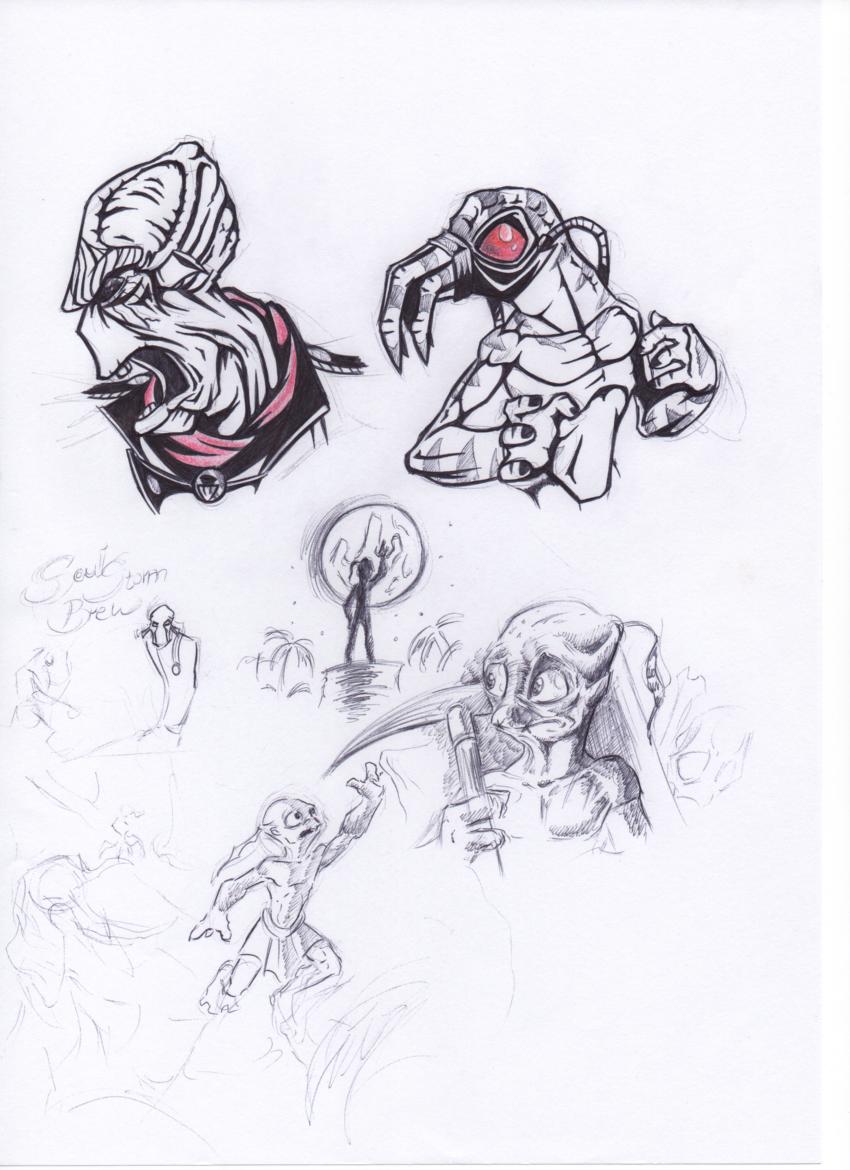 I'm not sure that you can see every char right so here's the list: General Dripik, a Slig (twice), Abe (three times) Brewmaster and some scrabs, but even I can't see them exactly XD...next time I'll try to bring something better