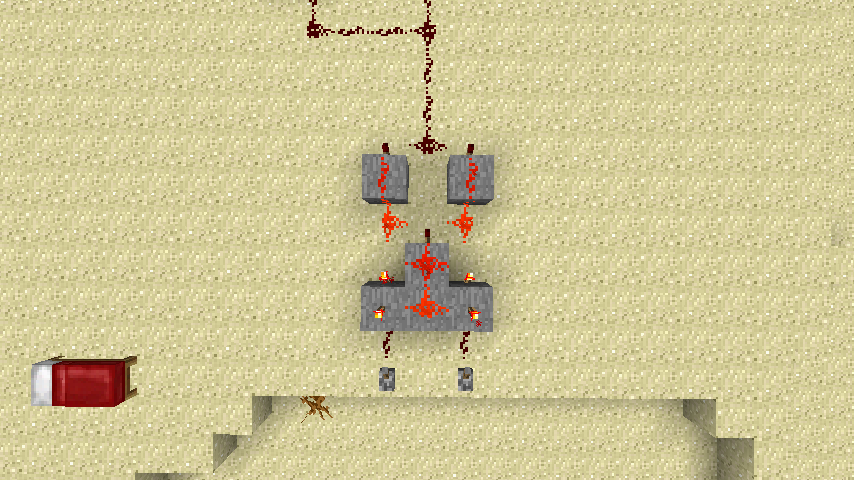 If you want to swap the buttons for levers the gate becomes as simple as an XOR connected to an RS NOR latch. There are numerous versions of both, each with different dimensions and output directions.