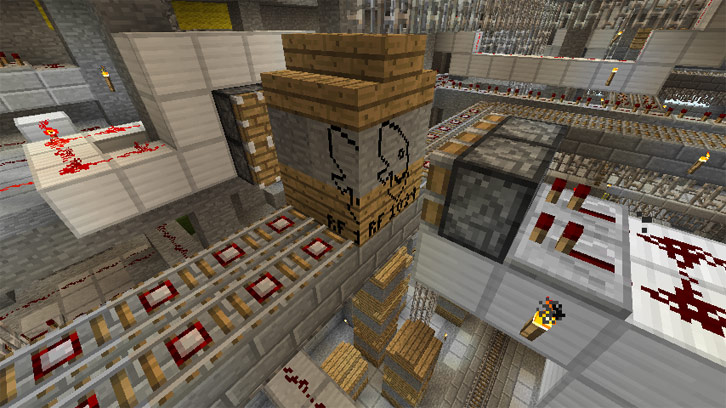 @Carnix and Alexfili - There's one major flaw with doing what you suggest: The logo is 4 different blocks - Since the scene is taken from the side, part of the logo would be visible on two of the side blocks because of the simplistic way that textures work in Minecraft (one 16x16 graphic which is tiled). As far as I know, there isn't a way to show the logo on only one side of blocks. Yes, I could shoot it from the front but I think it wouldn't look anywhere near as good as a side shot - especially since the barrel would obscure the view of the back pistons that "hold the barrel in place".