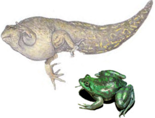 In a rather insectoid approach to metamorphosis, the tadpole pre-consumes enough nutrients to fuel a practically instantaneous transformation into a frog - becoming up to three times the size of its adult form in the process.