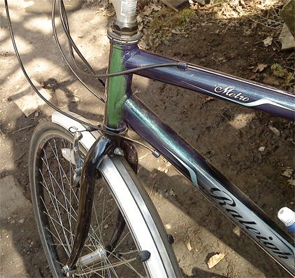 I accidentally scratched the frame. Later, I was using metal paint for a different job and had no masking tape handy, so I thought "Meh, I'll slap some paint on this crap while I'm at it, it's better than it going rusty." Why do I have a photo of this botched "repair"? Even I don't know! :P