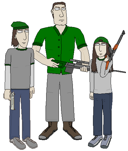 Since I can't edit attachments, I'll post an improved version of my last pic. I thought some names too. Since I named MicroD after his weapons, I'll do the same now: Tom (for using a custom rifle) and AKlara (for the AK-47).