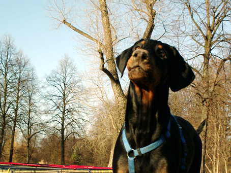 And finally, the dogs all from rescue homes, first off there's Jinx, my wonder-pooch, we've got re-enforced chicken wire all around the backyard and she still somehow manages to get out and roam around the estate, she can open doors and doggy gates, but as soon as you throw a ball for her, it hits her right bwteen the eyes and she looks at you like 'Duh?'.