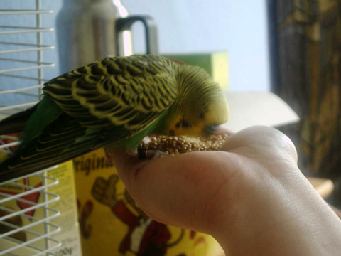 The Budgie, Chewbacca, (Star Wars Forever! ) he's also a mean, green, biting machine...attacked the cat when he was kit...