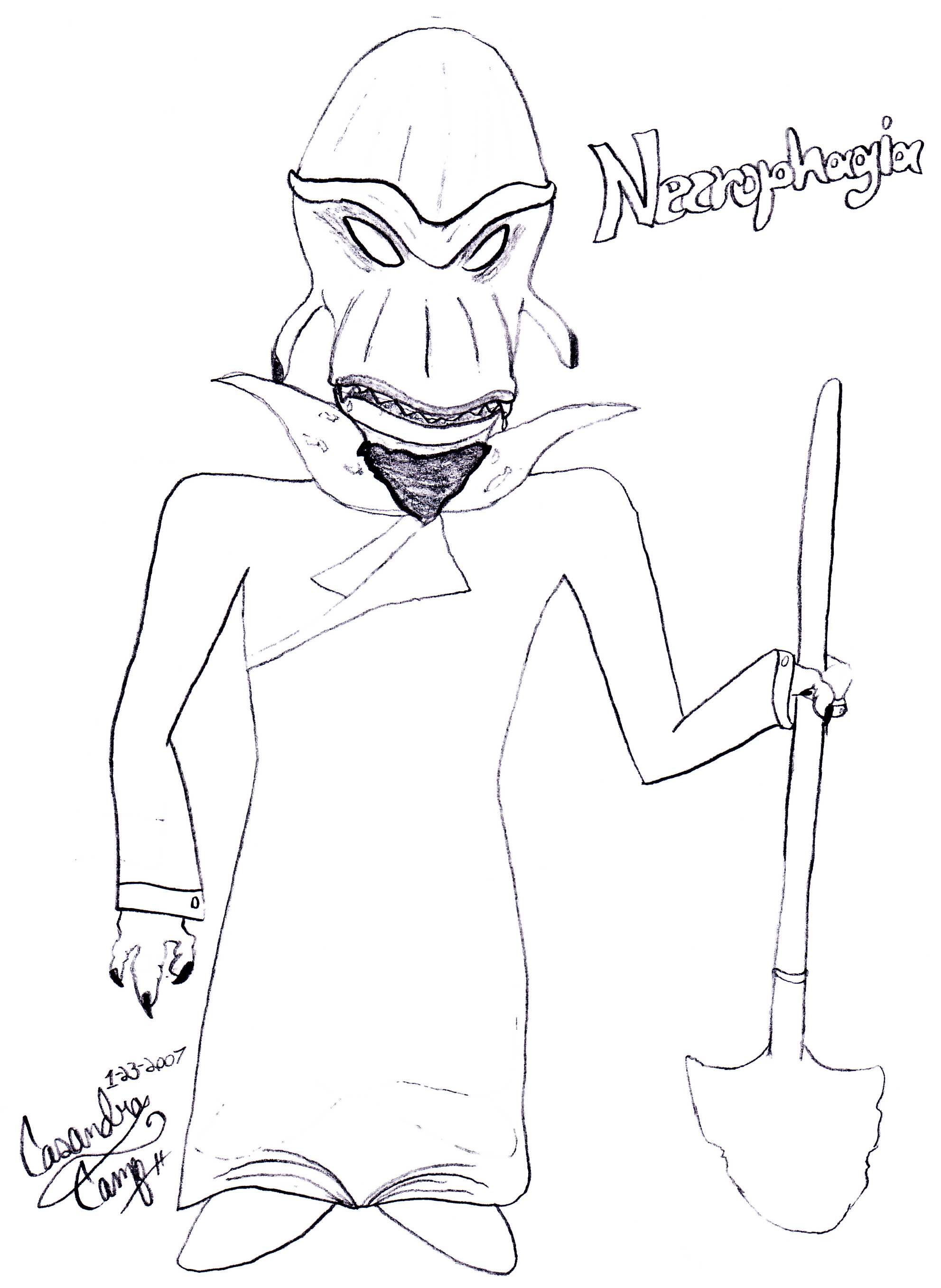 A small lamp flickered back and forth in a long, dark corridor. The light from the sunset that was slowly decending shone through the large vertical windows that lined the corridor walls, like soldiers in a march. A figure suddenly appeared down the corridor; the sound of gears and wires from it's mechanical legs moving up and down bounced off the walls. The sunset's light reflected off of it's black scales, as well as it's huge spikes stationed down it's back The spikes twitched occasionally as the figure moved down the corridor. Along it's waist was the change from mechanical "pants" to organic, reptilian skin, with a holster that held many weapons.The creature was very fit, having a 12-pack set of abs. The black skinned reptilian creature's red eye flashed, allowing enough light to shine on the long scar that decended from the top of his eye to the end of his cheek. A red badge, containing the five stars of general, shone as brightly as it's eyes. This creature was a Slig.