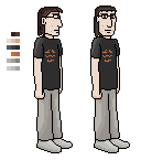 That's pretty good! The only thing I'd say about this sprite, other than its awesome, is that he looks a bit unconfortable... You know, like he doesn't look like what he'd normally look like standing...