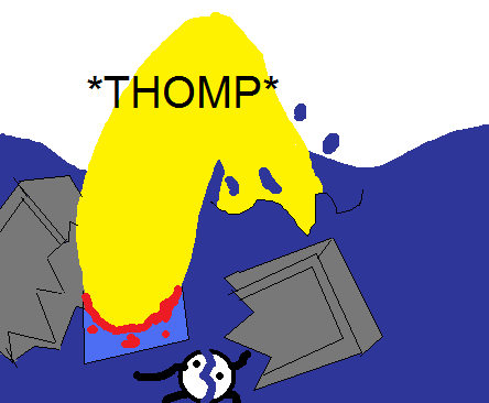 Note: Being surrounded by cold water allows TrifleCrab to use his stretching and bouncing powers to ridiculous levels. This explains his current giant size.