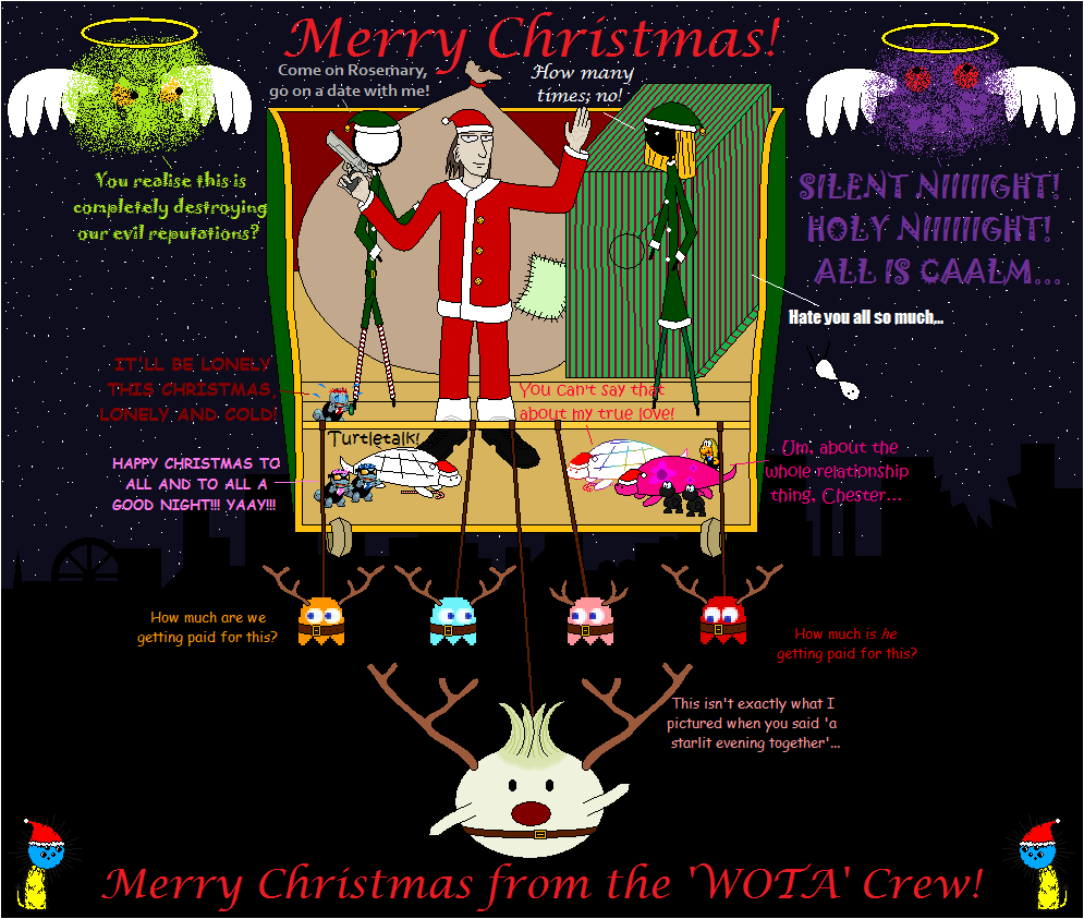 To celebrate the season of good will, here is an ever so cheerful official WOTA Christmas Card.