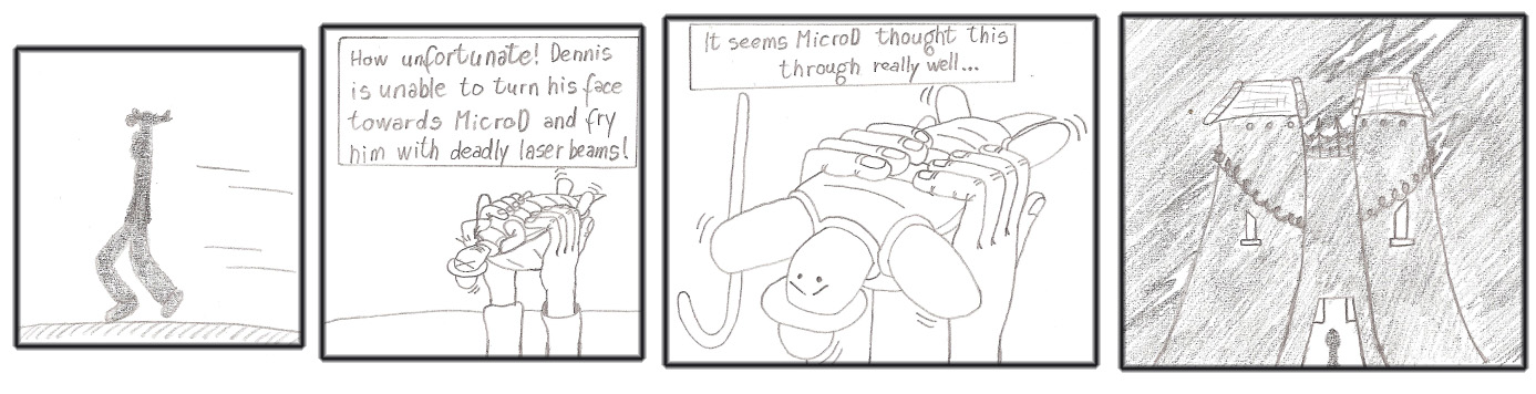 ABM- Lucky that neatly drawn stickman was there to distract you while my crudely drawn stickman escaped. I can't be bothered making a comic right now, if you can't tell.