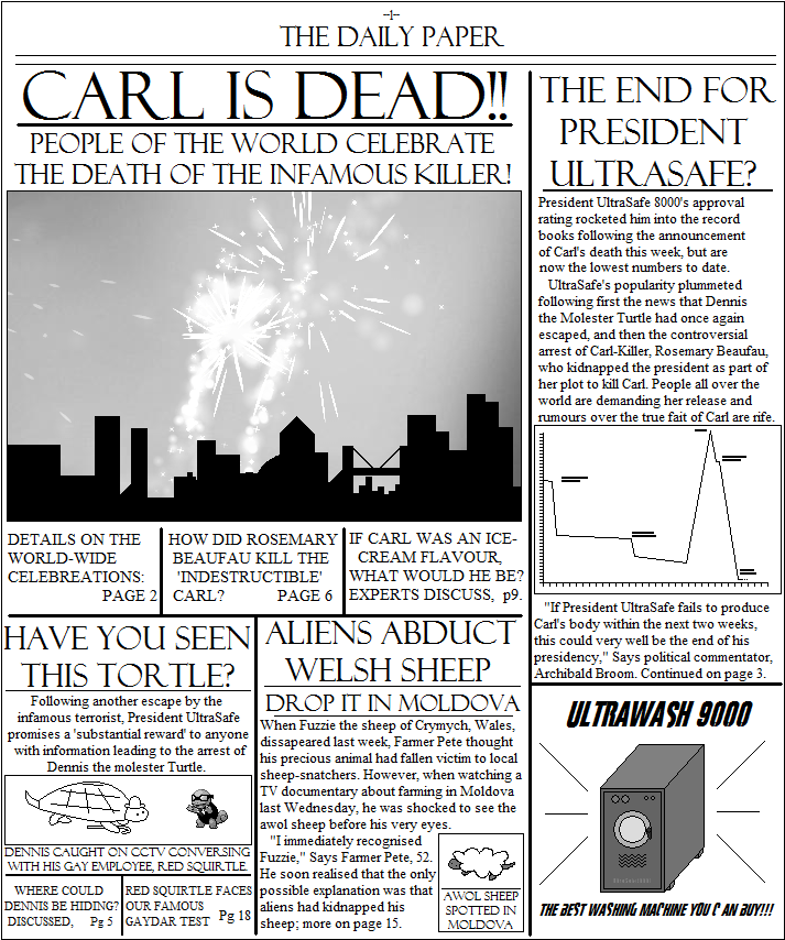The labels on the graph go 'Carl escapes from prison', 'Rosemary announces kidnap plot', 'Carl dies', 'Dennis the Molester Turtle Escapes' and 'Rosemary is arrested'.