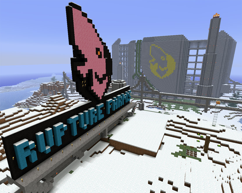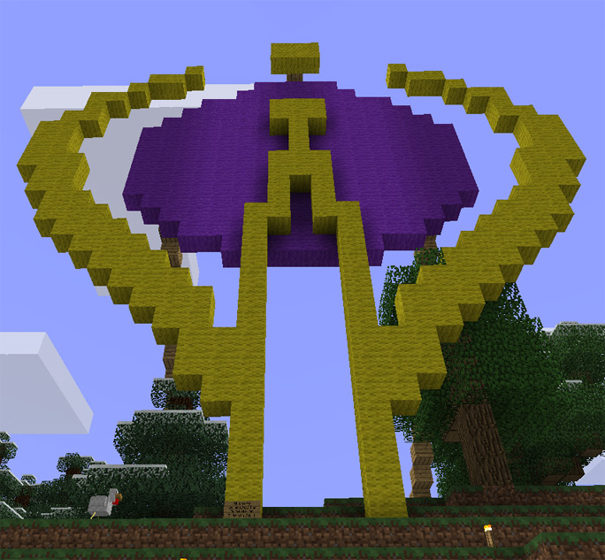 Here is the mudokon head that I built in single player shortly before joining the OWF server, it's based on . I sent Crashpunk the plans and helped him build the one on the OWF server now that's visible from Genesis base, but I'm sorry to say that I really don't like the stitches he put in the mouth. He did work hard gathering the materials for it though.