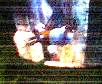 Then It got stuck on a building, and started moving her wings up and down, wich looked really good on a chicken. I grabbed my cheap-assed webcam and took a cheap-assed picture