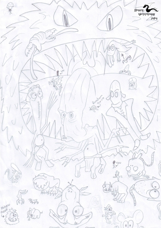 Ok, sorry I haven't updated this in ages. I blame it on art block and school. For those of you who have read my fanfic Shrown, the Scrab is almost finished. I just need to do some finishing touches to the arms and armour, and then I'll put it up. But for now, here's a crappy Fuzzle I drew eons ago.