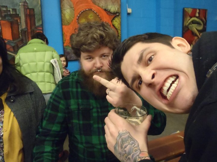 I hadn't showered in about a week in a half. Irritated by stupid people taking our pictures because I just wanted to drink with my friend and wife, not talk about painting all night. But thanks.