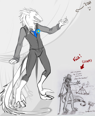 - I finished a sketch from September '10 of Zoe and her intern buddy Nye. I also did a character development of the time and when I first created her. I sucked. She's also had a little bit of a style change. I've put much more effort into her race and their anatomy and ways of life.