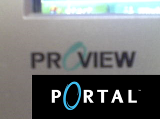 The logo on my monitor bears a slight resemblance to the Portal video game logo.