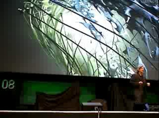 Lorne Lanning, creator of Oddworld, showed a variety of digital art works and discussed the future of digital fine arts, how they are being influenced by science and physics in their creation of impossible worlds, and how in turn science is gaining inspiration from the art.
