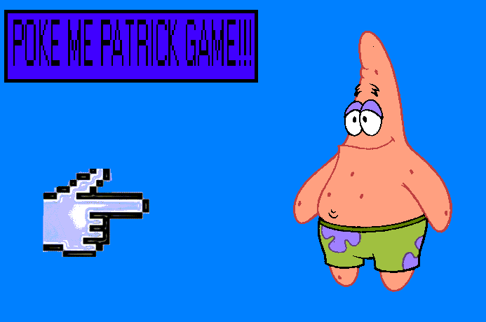 See, I thought up this game where this little pointer pokes patrick and then he laughs. But, I need someone to create for macromedia flash 4 for me please. Thanks. First scene.
