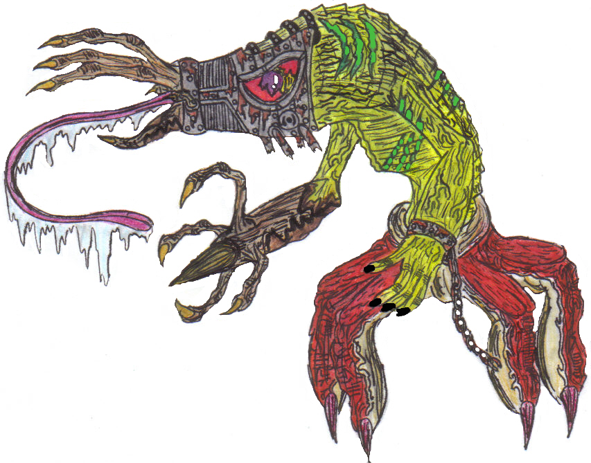 It had been some time since Eba had been shown his attributes and equipment. During this time Eba had been vigorously trained in the arts of killing by hand, weapon, or improvisation. Dr Mort had educated him well on the happenings and inhabitants of Oddworld, with a strangely un-biased view. He had learnt to use his new legs extremely well, and could now perform almost gravity defying feats. He could now activate his chant suppressors at will, with kicks and jabs, and excelled in using his mask when sharp-shooting. His training had been compressed fast, after the destruction of Necrum Mines, the Bonewerkz, and the Soulstorm Brewery, so he had been trained harder than planned, and was better off for it. Soon the time would come for his first mission, and Eba looked forward to it. He now lived in his own room, which backed onto yet another specially made facility, the training chambers. In the morning, as he was practising dropping bombs, a Slig trooped in. “General Eba, SIR!” shouted the Slig as he saluted. Eba had been automatically made a general once his training began “Dr Mort requests you presence at his labs, SIR!” Eba hovered low and dismissed the Slig saying thank you. He still couldn’t really treat them as underlings, he just didn’t find it right. All the Sligs respected Eba like no other. No Slig made jokes behind his back, no Slig did not stand to attention and salute when he passed by, and no Slig did anything that may in any way interfere with Eba’s schedule without asking first. It was strange, but he was a ‘messiah’ after all. The propaganda made sure that no news of genetic tampering had reached the troops, and Shrinks would put straight any Sligs that showed the slightest doubt. His gun and mech-pants were revered as holy icons, and had been etched into walls all over Industrial facilities. The Barracks main entrance hall contained a huge mural of Eba using his rifle to destroy a black, purple winged Mudokon, with the words “The death of Abe” underneath. Eba didn’t relish it, but he did not mind it either. It was nice to stand out sometimes. He retracted his wings and chopper, and switched to normal mode. He made his way out, and to a heavily armoured ball car. He wanted to travel in the normal ball cars with other Sligs, but was forbidden to. As the ball car clanked, whirred, and slowly spun while moving forward, Eba thought more about this first mission. He had not been briefed, but knew that it was something to do with Mudokon leaders, and a gathering. Before his thoughts could trail anymore the car clunked to a stop, and shuddered slightly. The door opened to a small chamber, the decontamination room. After the destruction of Soulstorm Brewery news had come in of green gas killing Sligs and destroying machinery Dr Mort had installed lots of decontamination equipment like in the genetics block. Eba had suggested that Abe had perhaps somehow possessed his farts, but Dr Mort had dismissed this as childish foolishness. Eba stepped in, the door shut behind him, and a weak spray came from all sides. Once it had stopped, the door ahead opened in a completely white corridor. Dr Mort stood into the centre. “Welcome Eba, the ride was amiable, I presume?” Eba nodded and stepped through “I still think those machines should be removed, they are a distraction and a waste of time.” Eba observed. Over time, Eba had adopted Dr Mort’s accent and fancy way of speaking, purely by accident. “When that spray saves this lab, then you will see child. Come I have something to tell you, and show you on the projector.” He scuttled off to the third door on the right into the room Eba had woken up in, months ago, after his first meeting with the entire army of new recruits. Through this room was the door to the projector. All was the same, apart from the security orbs which constantly monitored everything after the recent attacks. He went through to the already darkened projector room and sat down on the steps. Dr Mort followed him in. “Now, it is time for you to learn your full purpose…” Eba groaned “Not more incredibly important details which you happened to miss out first time around?” Dr Mort grinned “I am afraid that is the case” The projector sphere fuzzed on and a Slig appeared in the centre. There was something very odd about the Slig, Eba noticed, as it faded into view. It was grey, and had two legs like a big bro. It was bent over quite far, and had very long arms. Eba was stunned when he realised what it was “…that’s a machine!” Dr Mort nodded “This is what you must realise, you are not alone in this world. You are one of three ultimate Sligs, each designed to hunt down Abe.” Eba turned to face him “Why haven’t I heard of them before? Why doesn’t anyone else know of them?” Dr Mort grimaced slightly “The other two are in fact secret. You were designed to be a morale raiser, as well as one of the three Ultimate Sligs. The first is, as you can see, a machine. It is the Abe-Suppressor. It is designed to hunt down, tranquilise or capture, and return Abe to the nearest Industrial facility, where he will be dealt with. It does not sleep, eat, or grow tired. It is already out there, relentlessly following him, as the programmers intended. We have no doubt that Abe has no idea it is after him. It is also programmed to hunt Mudokon leaders, as secondary objectives. The second is you, the morale raising super intelligent assassin, a figure for the armies to follow, and probably the most effective of the three at catching or killing Abe, the genetically enhanced one. Then the third…” Dr Mort grimaced slightly “If both should fail, the final resort shall be used…” the picture changed to a horrible beast. It had the top half of a Slig, but instead of tendrils, had Paramite mandibles, and a long thin tongue snaking from the centre. Once arm was a strange fusion of Paramite parts, the other was normal, and instead of 
